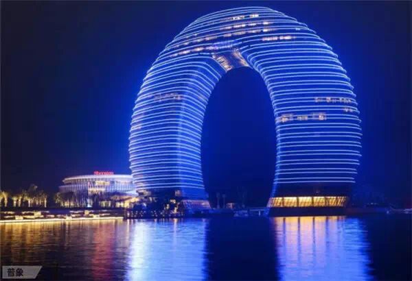 中国湖州喜来登温泉度假酒店,又名(月亮酒店),位于湖州市南太湖旅游度假区核心板块。这座国内首家水上白金七星级酒店,由美国MAD建筑师事务所、世界知名建筑大师马岩松先生主创设计,耳目一新的指环型形状,将水的动、静态之美结合,是中国湖州“世界第九湾”的标志性建筑。