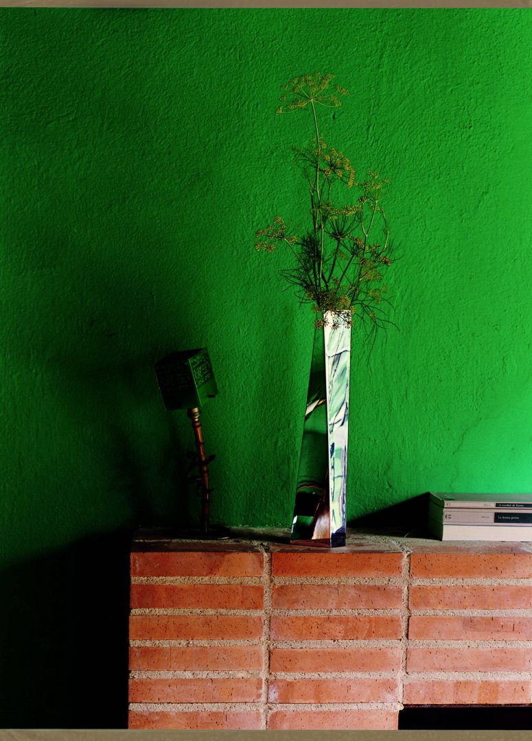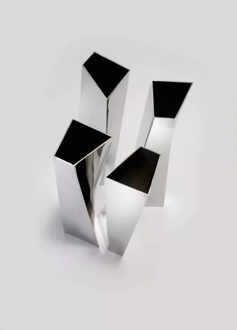 Celeste 花瓶沿着对角线稍微扭动了一下,使原来非常沉稳的方块一下子有了动感,正适合放在方方正正的房间里增添活力,同时花瓶使用了金属材质,沉稳而时尚。
