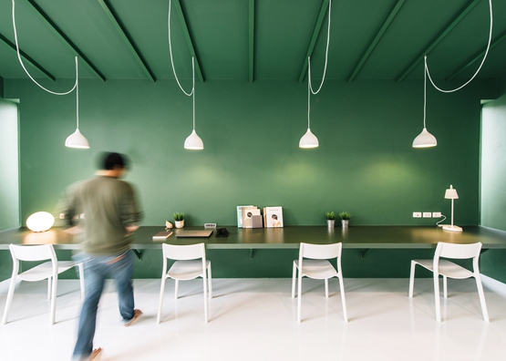 “阿隆姆工作室”说:“我们在室内装修大量使用绿色,是因为客户喜欢绿色(泰国电视制作公司的名称就是Green 26)。但也将大自然的色彩带进了办公室。