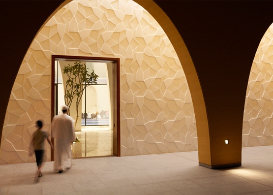 清真寺的黄褐色的沙石外墙,与它的明亮的白色大理石拱门和内部形成对比。其目的是为祈祷者提供一个与粗糙的物质世界隔离的安静之地。